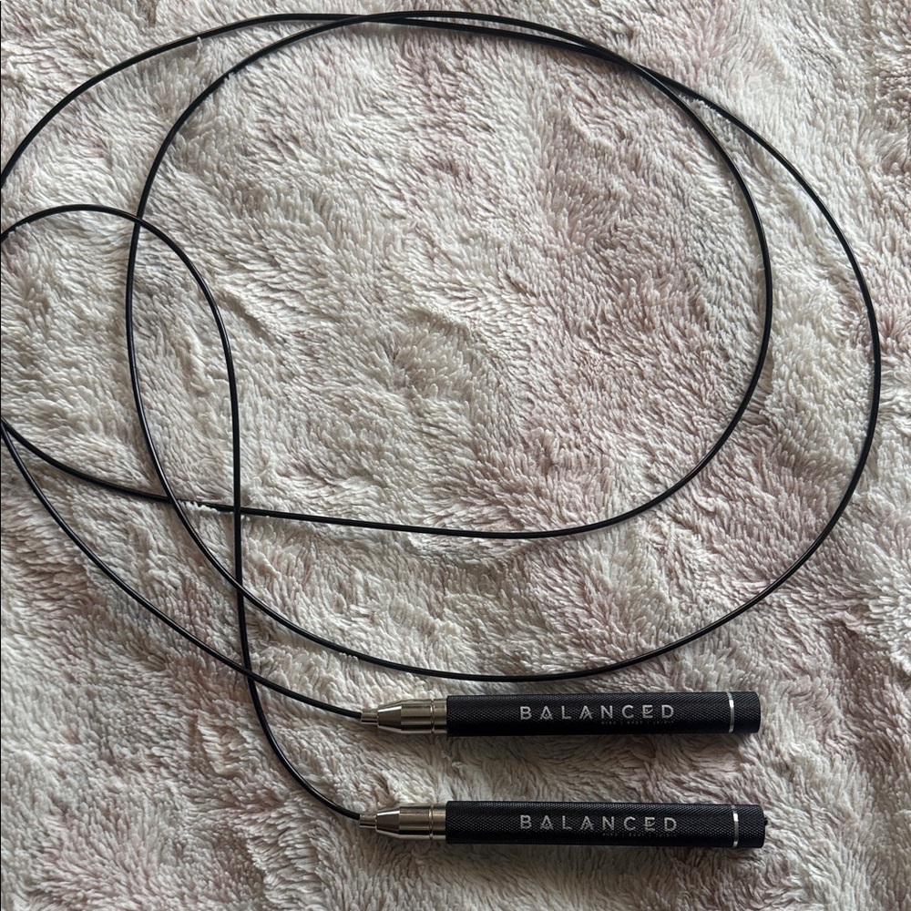 Enhance your workout with the black jump rope. Ideal for boosting agility and endurance.