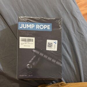 Durable black jump rope with ergonomic handles. Ideal for fitness routines.