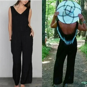 This sassy classic black jumpsuit features a sassy two toned fringed detail on the back and leaf/floral print. Pair with statement earrings & heels. I LOVE THIS JUMPSUIT, I had to keep one for myself!