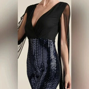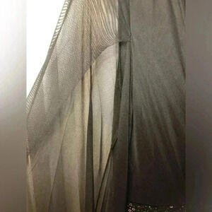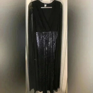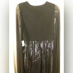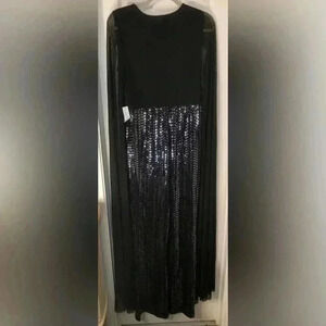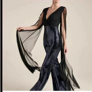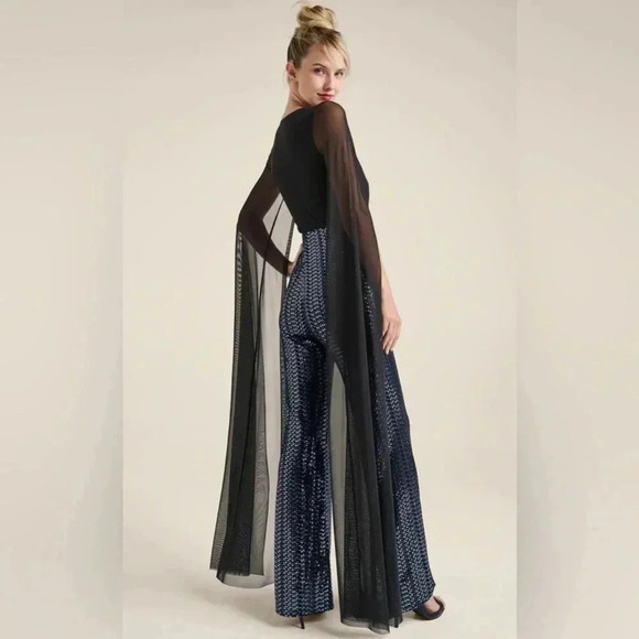Wide leg jumpsuit with sequin bottom with floor length sheer sleeves