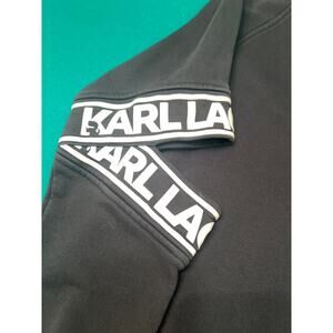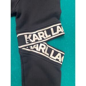 Black KARL LAGERFELD PARIS White Logo Sweater Dress Sz M Elbow cut outs