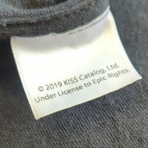 100% cotton black graphic tee with KISS logo in various animal print and American flag designs. Tag says it's a small/medium, but I'd say it fits more like a small. Slightly imperfect bottom hem, see images.