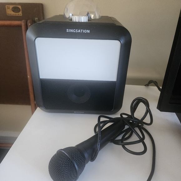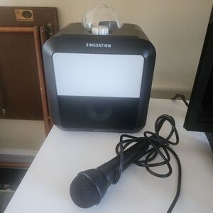 Experience the joy of singing with the Karaoke Machine. This sleek black device comes with a microphone, perfect for any music lover.