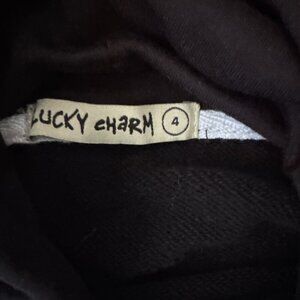 The Black Keys BKYS Lucky Charm Bomber Hoodie is a stylish and comfortable pullover hoodie designed for boys in size 4. It features long sleeves and comes in a classic black color with embroidered accents giving it a unique and fun touch. The hoodie also includes convenient pockets, making it both practical and fashionable for kids to wear. Perfect for young fans of the Black Keys or those who love a touch of charm in their wardrobe.