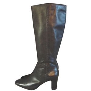 Sleek black leather boots with a modern design. Perfect for any occasion.