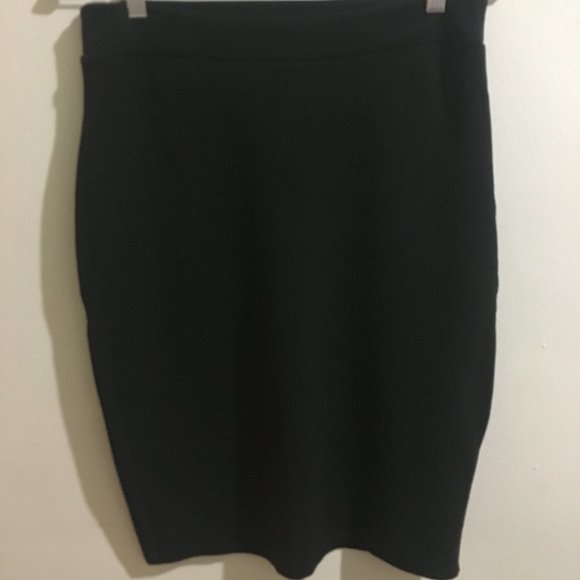 JVGrabs - all black comfy above the knee length skirt. Runs a bit small 96% Polyester 4% Spandex - Size - L - Item#32