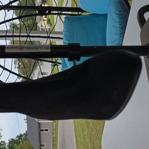Stylish black knee-high boots with a sleek design. Perfect for any occasion.