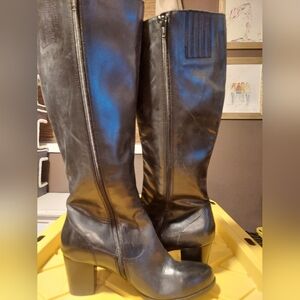 Step out in style with these elegant black knee-high boots. Perfect for any occasion, they offer both comfort and sophistication.