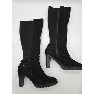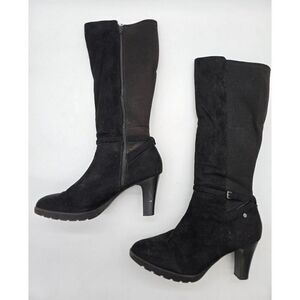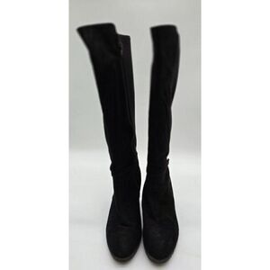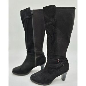 Black Knee-High High Heel Boots With Zipper & Buckle Accent Womens Size 8.5