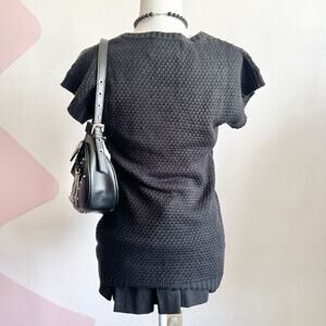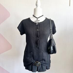 Black Knit Button Top, Y2K, Minimalist, Indie, Retro, Soft Girl, Preppy, Medium