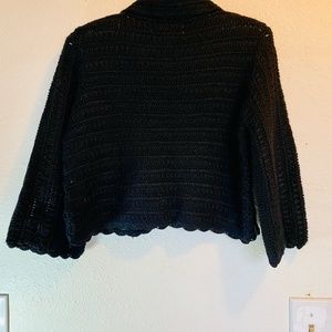 Knit Sweater Crop Cardigan to go over your favorite top when you need a little extra warmth or just to cover those arms. A crystal button keeps to closed so you can go about your business and enjoy your day. On the right sleeve, there are two little pulls on the yarn. They are hard to see but they are there. Please see the last two photos for them. I am sure they could be trimmed off with no problems.