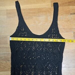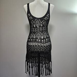 Black Knit Fringe Dress Size Small Boho Crochet Beach Cover Up Summer Festival
