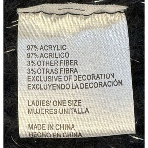 Black Knit Pom Pom Beanie Hat Silver Metallic Thread Women's One Size