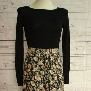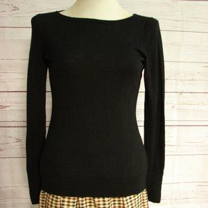 Black Knit Pull Over L/S Top with Rhinestones sleeve sleek light weight Medium
