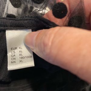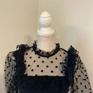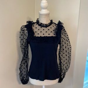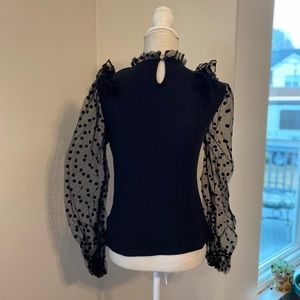 Black Knit Shirt w Sheer Black Dot Sleeves and Yoke