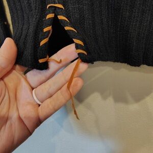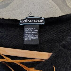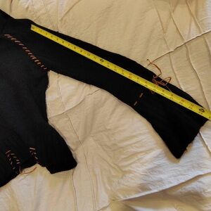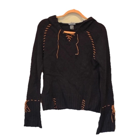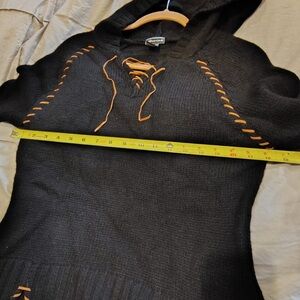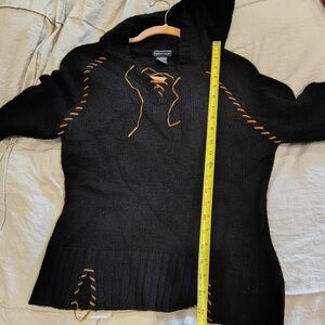 Black Knit Y2K Whipstitch Leather Black Hoodie Sweater Women L Bell Sleeve Boho