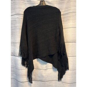 Black Knitted Fringe Poncho Shawl OS