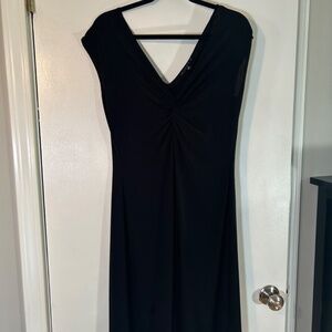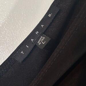 Tiana B. sleeveless little black dress with V-neck knot embellish. Size L. Length just past knee. Great condition, worn once, thin material perfect for summer. Moderate stetch. 92% polyester, 8% spandex.