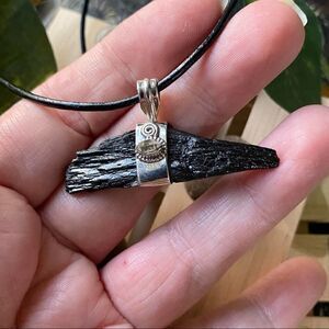 Black Kyanite & Herkimer Diamond Solid Sterling Silver Pendant Necklace