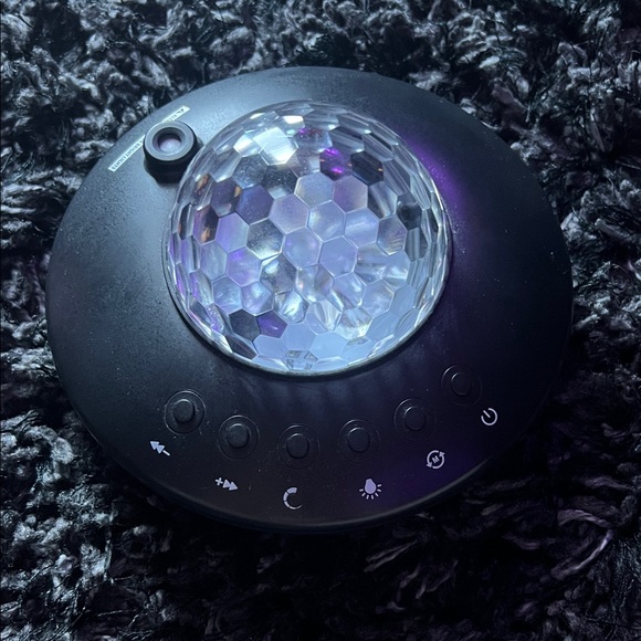 Black LED light projector with a crystal dome. Features multiple control buttons for various light settings.