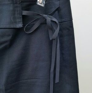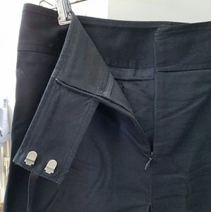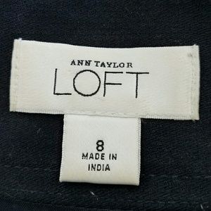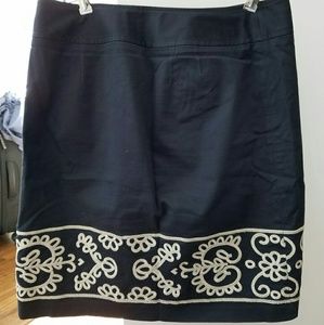 EUC Lovely black LOFT skirt with tan stitched detailing on bottom. Zipper, clasp and tie closure. Lined. Medium. No defects.