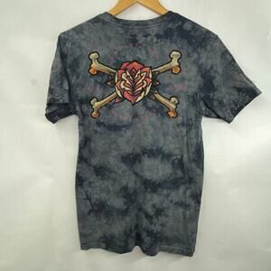 Black Label Affliction Goth Skull Rhinestone Full Print All Over Top Size Small