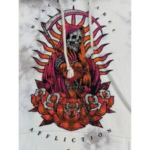 Black Label Affliction Hoodie Mens L Gray White Tie Dye Skull Rose Graphic