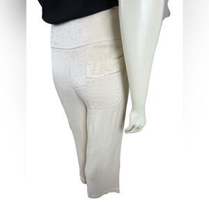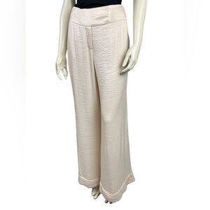 Black Label BCBG Max Azaria Wide Leg Ivory Shimmer Wide Waistband Dress Pants 10