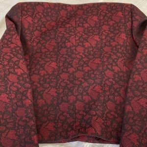 Black label suit by Evan Piccone, burgundy covered with black lace, fully lined. Worn once