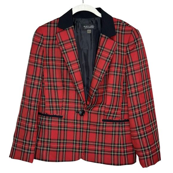 Black Label Evan-Picone Blazer Womens 8 Red Plaid Tartan One Button Jacket