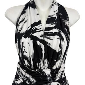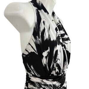 Black Label Even Picone Jersey Knit Modified Haltered V-Neck Stretch Dress sz 8