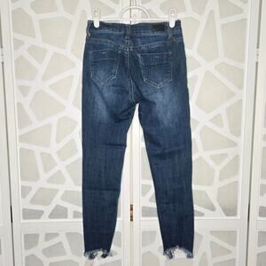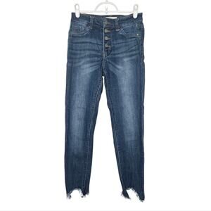 Black Label High Rise Button Fly Raw Hem Cropped Skinny Jeans Womens 1 or 24 Stretchy