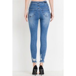 Folded High Waist – Skinny Jeans with Self-Tie Belt