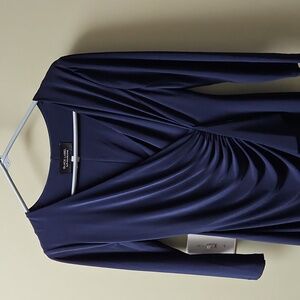 Royal blue rouched dress. It has beautiful detail, sleek material, and would be perfect for a wedding or party.