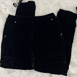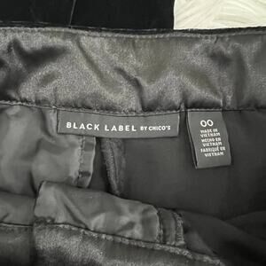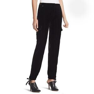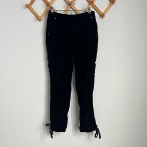 Black Label by Chico’s Black Velvet Pants Size 00 - Utility style with side pockets - ties at bottom - cute gems on pockets - excellent pre-owned condition!