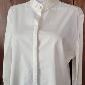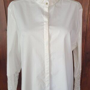 Black Label by Chico’s White Long Shirt Dress Tunic Top Lace Sleeves Size 2 Lg.