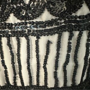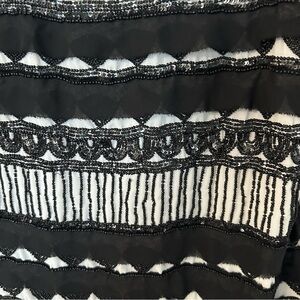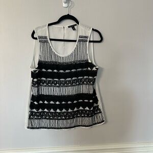 Black Label by Chico’s Women’s Sleeveless Black & White Beaded Blouse Sz 2 GUC