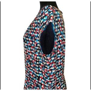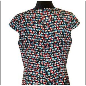 Black Label by Evan Picone A Line Multicolor Geo Print Dress with Cap Sleeves Sz