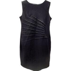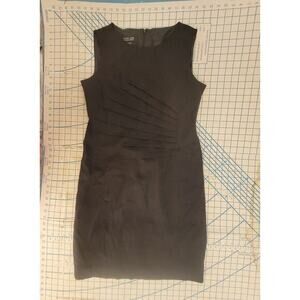 Black Label by Evan Picone Black Crepe Center Pleated Sleeveless Sheath Dress