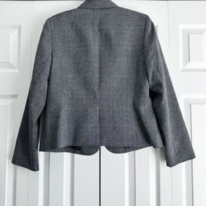 Black label Evan Picone, Evan Picone Blazer, Gray plaid jacket, women's blazer, suit jacket, tailored fit, classic fit, single-button, notched lapels, career attire, business attire