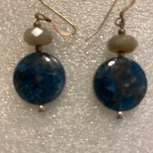 Beautiful Black Labradorite and Flower Jade Necklace and Earrings Set!