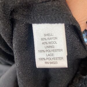 -zip up back, lined, rayon and wool, with lace detailing along sides.