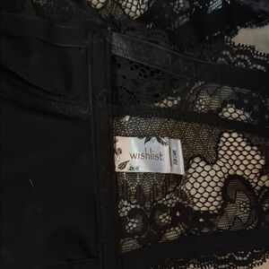 Wishlist black lace bandeau, perfect for layering and strapless dresses. Its intricate lace design adds a touch of sophistication to your intimate collection.