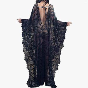 Black Lace Beach Cover Up Caftan
