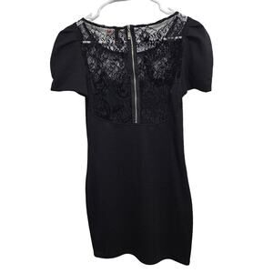 Black Lace Bodycon Mini Short Sleeve Dress. Size M. Back exposed zipper. Lace on the top of the dress in the front and back. Great condition!