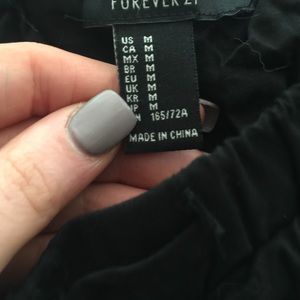 hi! these shorts have not been worn before, and are from forever 21. they have lace rimming on the bottom, and are made of super soft material! size is a medium, and there is a stretchy waistband so they are super forgiving :-) contact for additional information