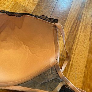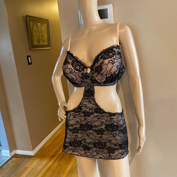 Condition: From a smoke free home. A very small piece of mesh is missing on the mesh area to the left cup of the bra. The black lace on the exterior covers it so it's not noticeable. Light pilling on interior of the bra. Priced accordingly.