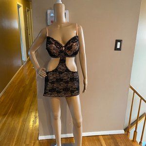 Black Lace Bra/Lingerie All In 1 Set Exposed by Magic Silk XL