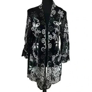 Black Lace Cardigan w/ Rope Floral Accents, size Medium