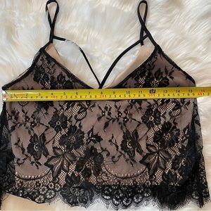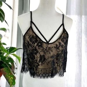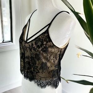 ✨ Black Lace Criss Cross Strappy Lined Flowy Crop Camisole Top Size XS